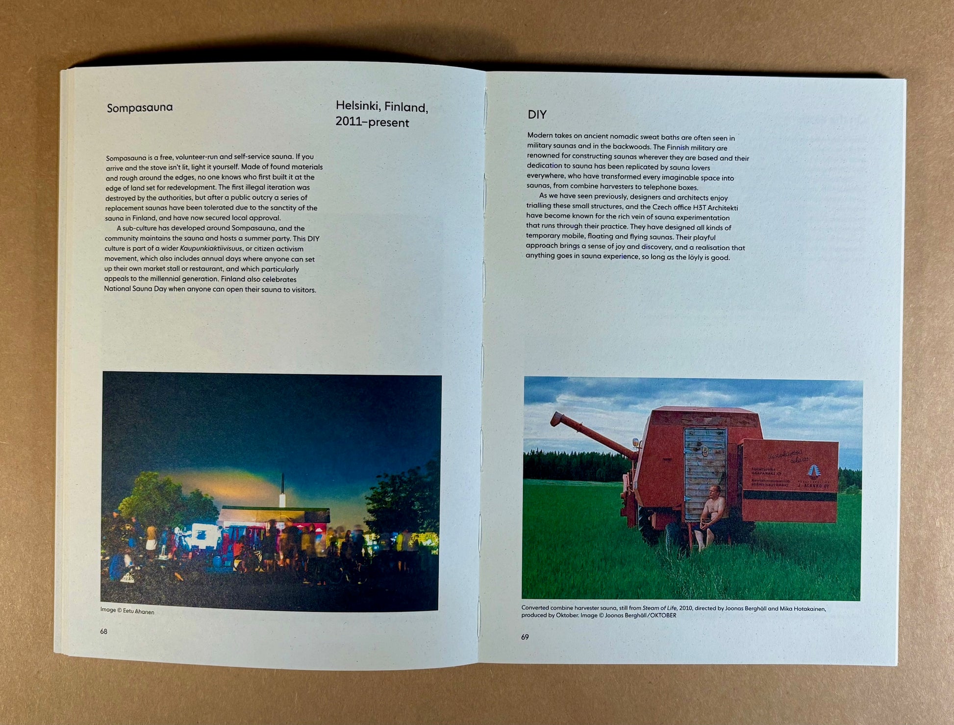 Social Sauna explores sauna culture from ancient global traditions of steam bathing through to modern experimental sauna practices. Examples include the Bathing Culture sauna in Gothenburg by architects raumlabor, the Agora sauna created for the nomadic SALT festival and urban bathhouse pioneers Löyly, Helsinki and Othership, New York.